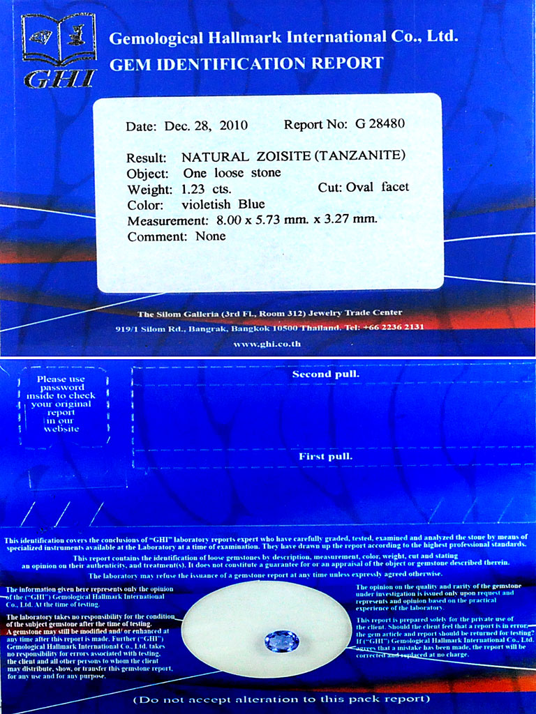 Certified 1.23 Ct. Clean Oval Shape Natural Gem Violetish Blue Tanzanite