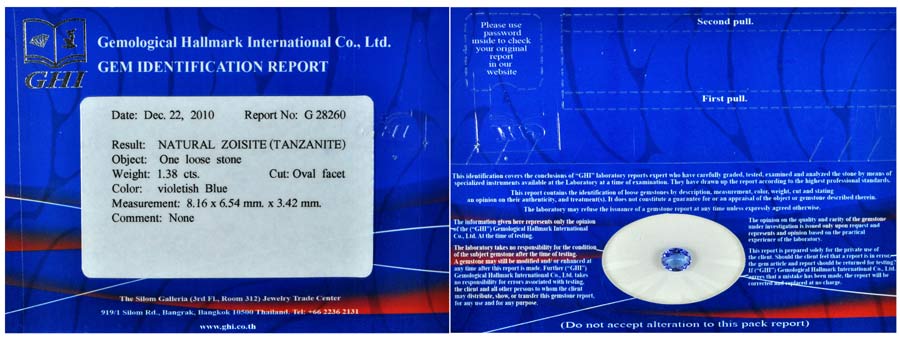 Certified Violetish Blue Tanzanite 1.38Ct. Clean Oval Shape Natural Gemstone
