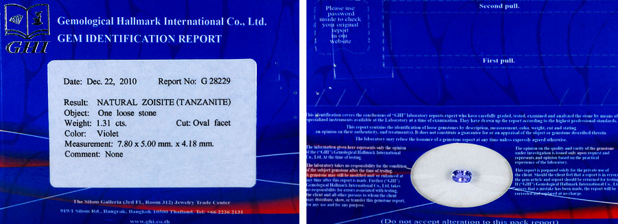 Certified Violet Tanzanite 1.31 Ct. Oval Shape 7.80 x 5.00 Mm. Natural Gemstone