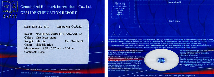 Certified 1.49 Ct. Clean Oval Shape Natural Gem Violetish Blue Tanzanite