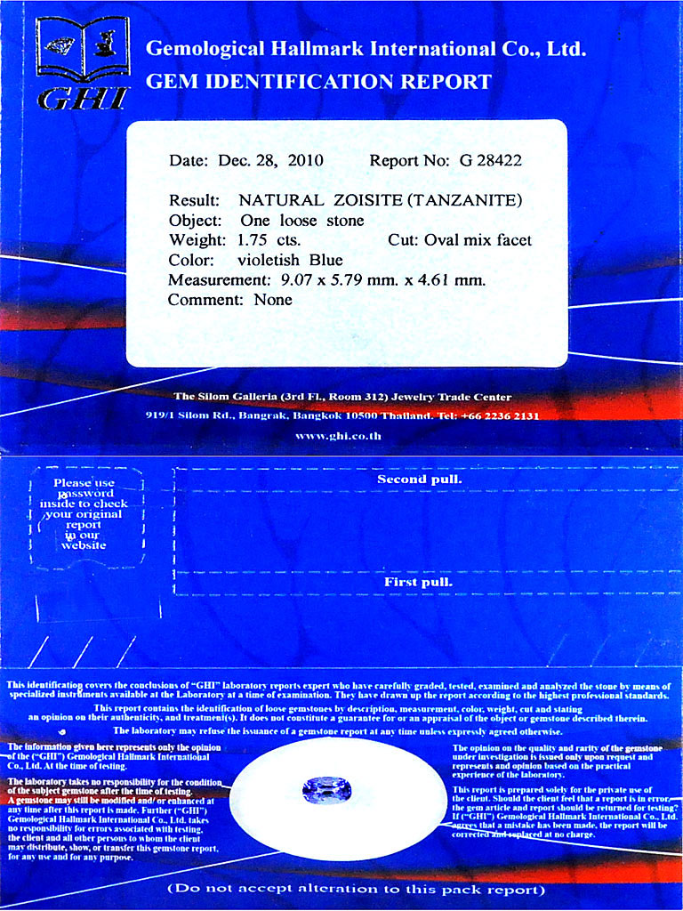 Certified 1.75Ct Clean Natural Violetish Blue Tanzanite