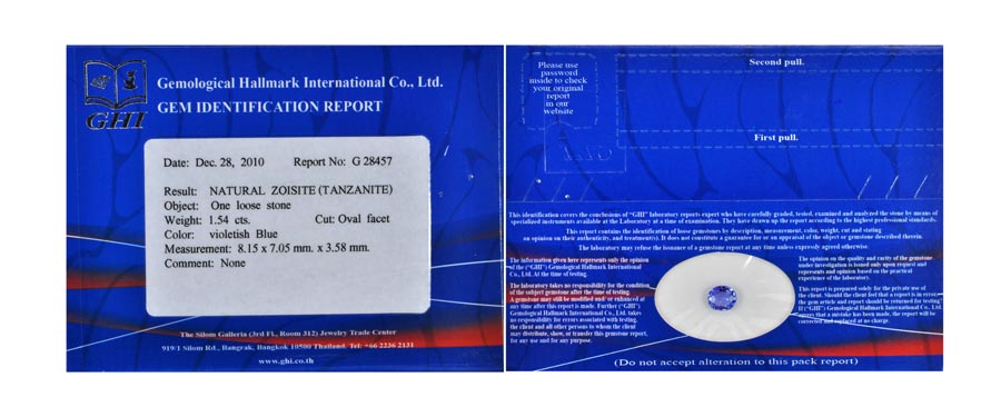 Certified 1.54 Ct. Oval Shape Natural Gem Violetish Blue Tanzanite From Tanzania