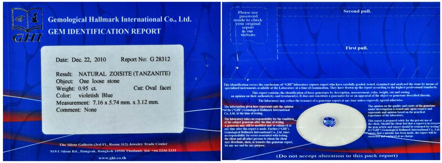 0.95 Ct. Oval Shape 7.16x5.74 Mm.Natural Gemstone Violetish Blue Tanzanite