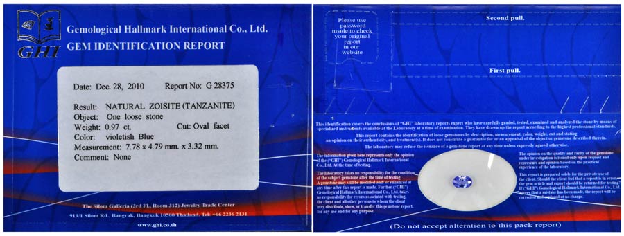 Certified Violetish Blue Tanzanite 0.97 Ct. Clean Oval Shape Natural Gemstone