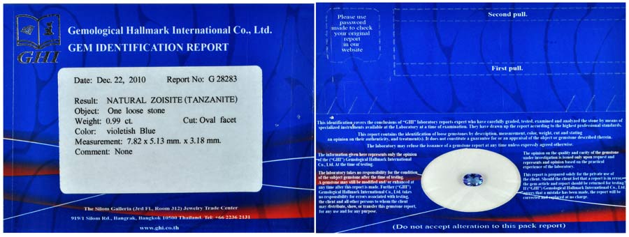 Certified Violetish Blue Tanzanite 0.99 Ct. Oval Shape 7.82 x 5.13 Mm. Natural