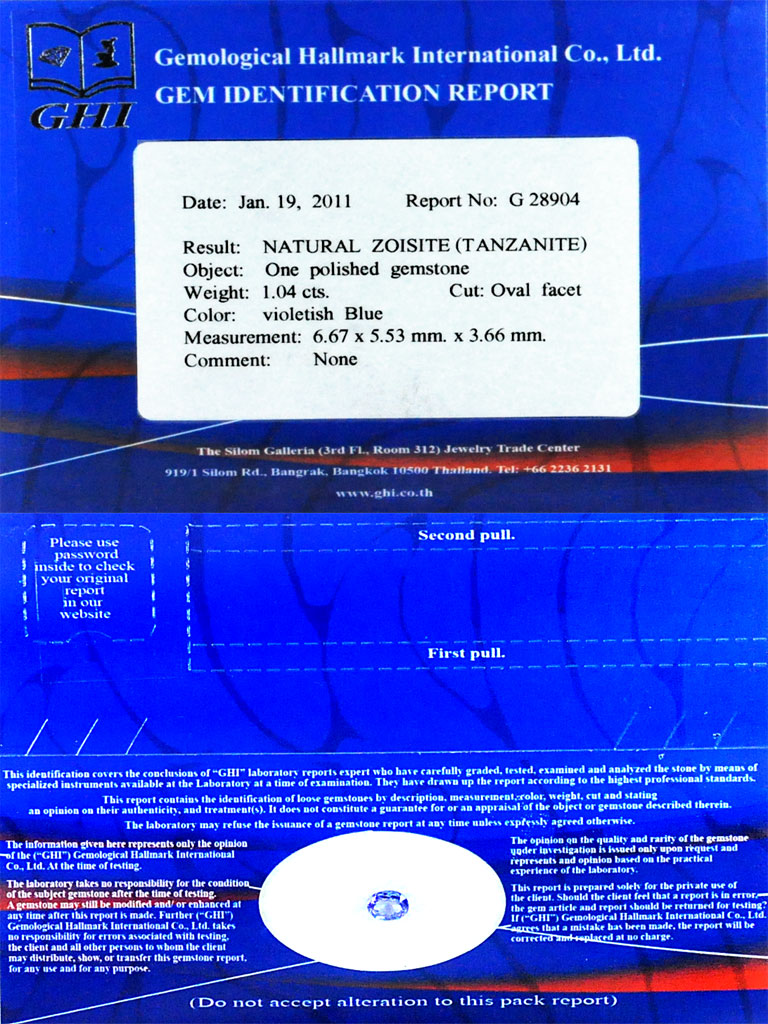 Certified 1.04 Ct. Clean Oval Shape Natural Gem Violetish Blue Tanzanite