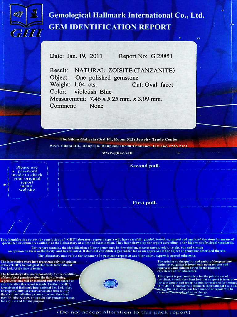 Certified 1.04 Ct. Clean Oval Shape Natural Gem Violetish Blue Tanzanite