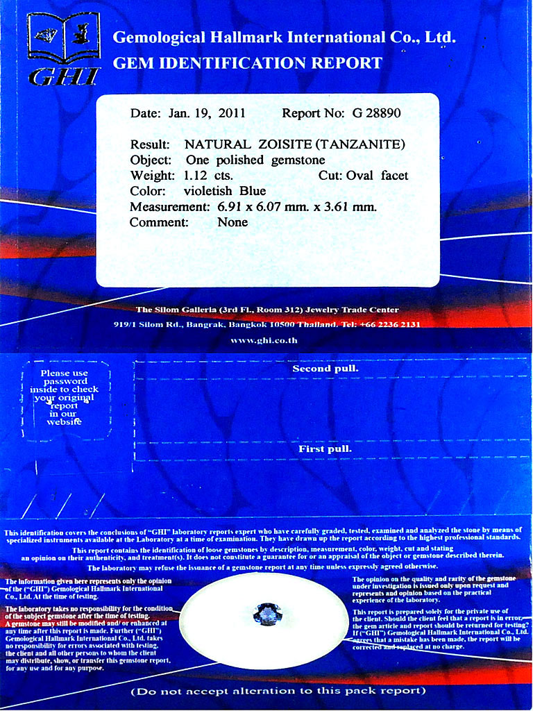 Certified 1.12 Ct. Oval Shape Natural Gem Violetish Blue Tanzanite From Tanzania