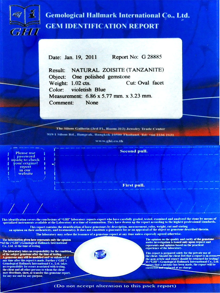 Certified Violetish Blue Tanzanite 1.02 Ct Oval Shape 6.86 x 5.77 Mm Natural Gem