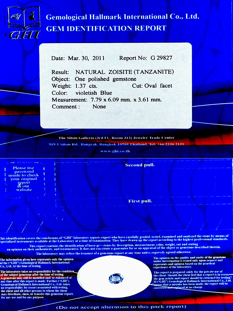 Certified 1.37 Ct. Clean Natural Oval Shape Violetish Blue Tanzanite Gemstone