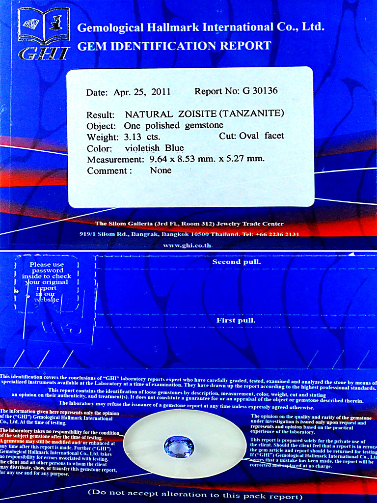 Certified 3.13 Ct. Clean Natural Violetish Blue Tanzanite Oval Shape Gemstone
