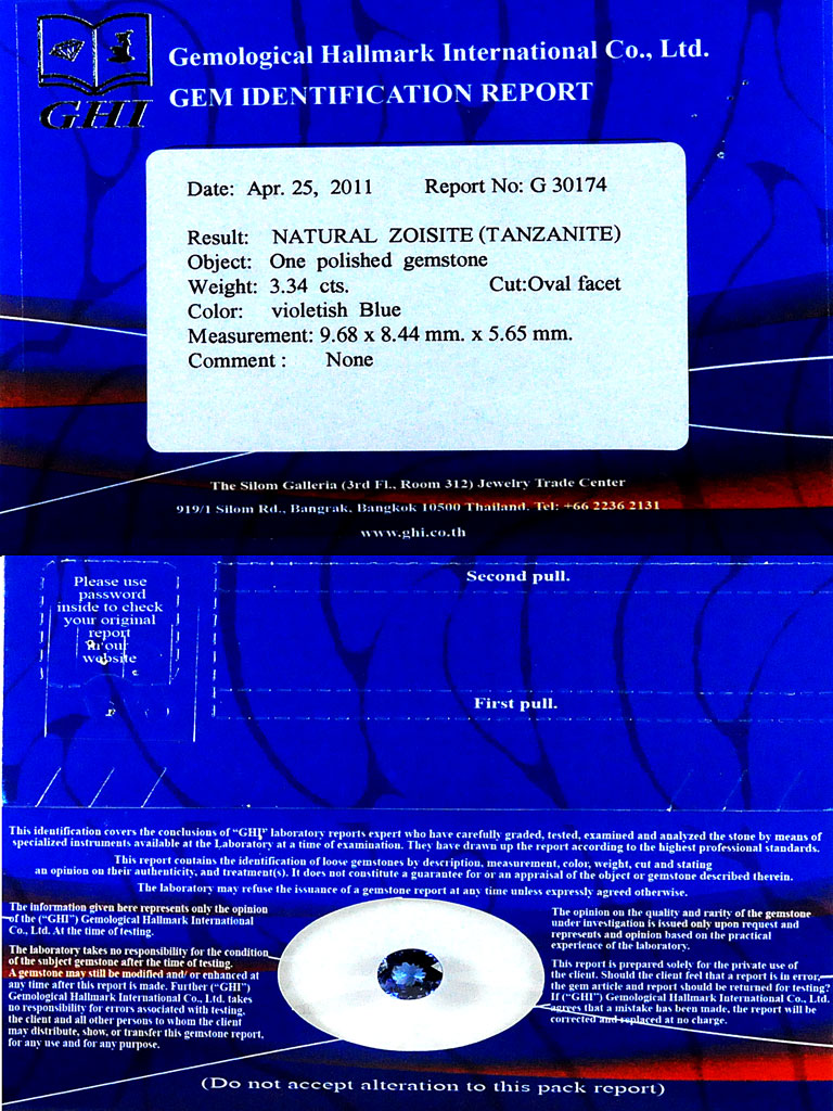 Certified 3.34 Ct. Clean Natural Gem Violetish Blue Tanzanite From Tanzania