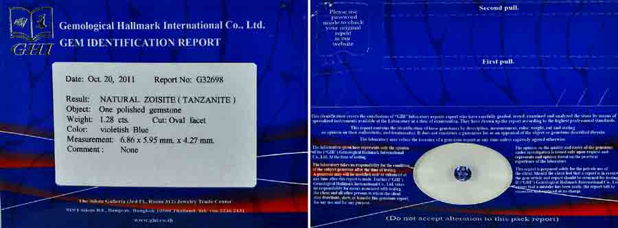 Certified Violetish Blue Tanzanite 1.28 Ct. Oval Shape 6.86 x 5.95 Mm. Natural