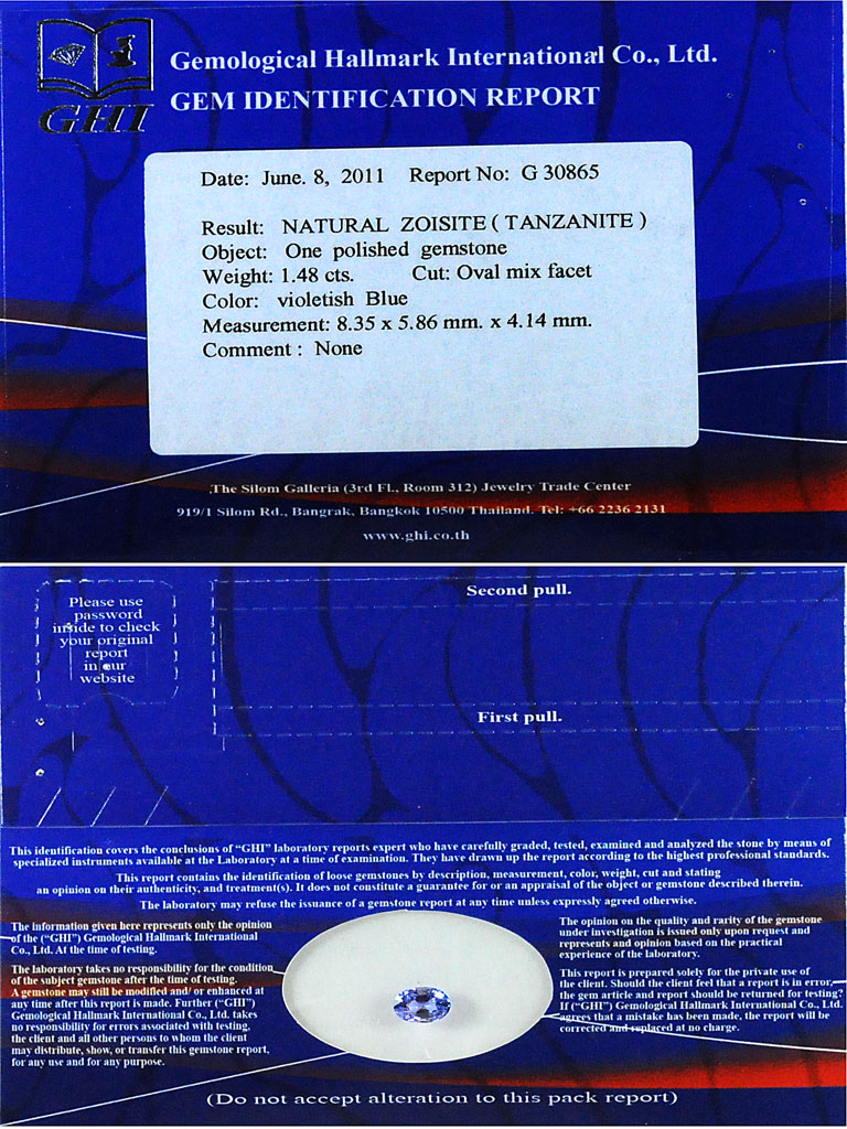 Certified 1.48 Ct. Clean Natural Gem Violetish Blue Tanzanite From Tanzania