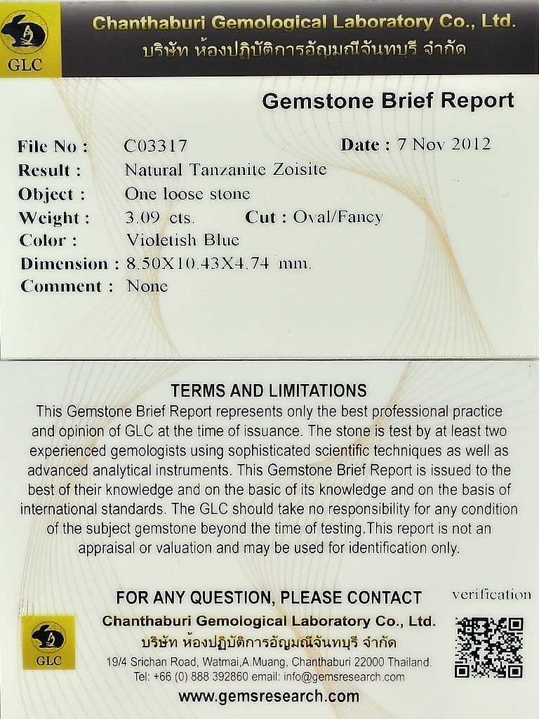 3.09 Ct. Oval Shape Natural Gemstone Violetish Blue Tanzanite From Tanzania