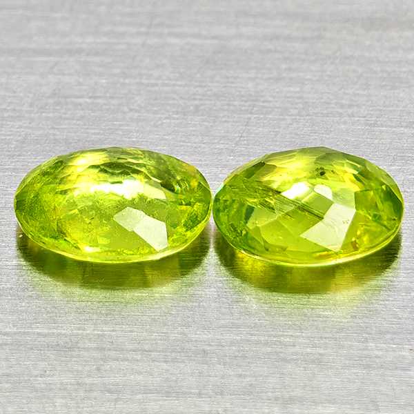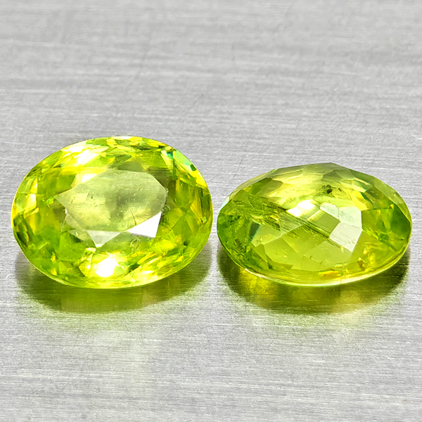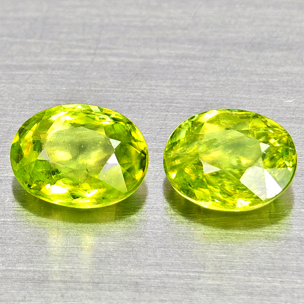 Natural Intense Yellow Green Titanium Red Spark Sphene 1.60Ct. 2 Pcs Oval Shape