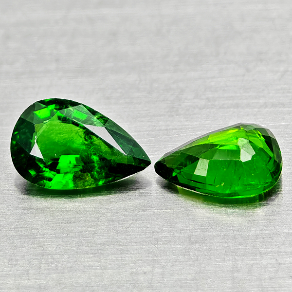 Natural Green Chrome Diopside 0.78 Ct. 2 Pcs Pear Shape Gemstone From Russia