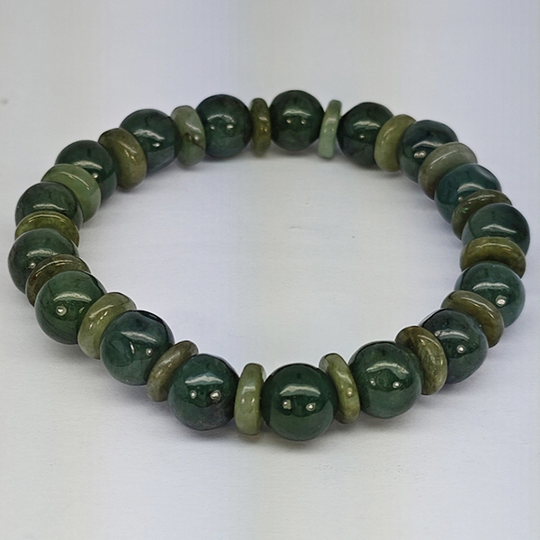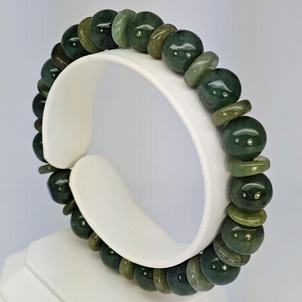 Natural Multi Color Green Genuine Jade 140.14 Ct. Beads Stretch Bracelet Gemstone From Thailand