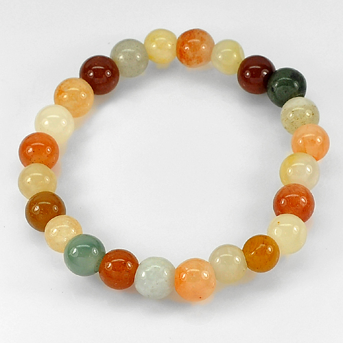 75.05 Ct. Natural Gem Multi-Color Jade Beads Flexibility Bracelet Length 7 Inch.