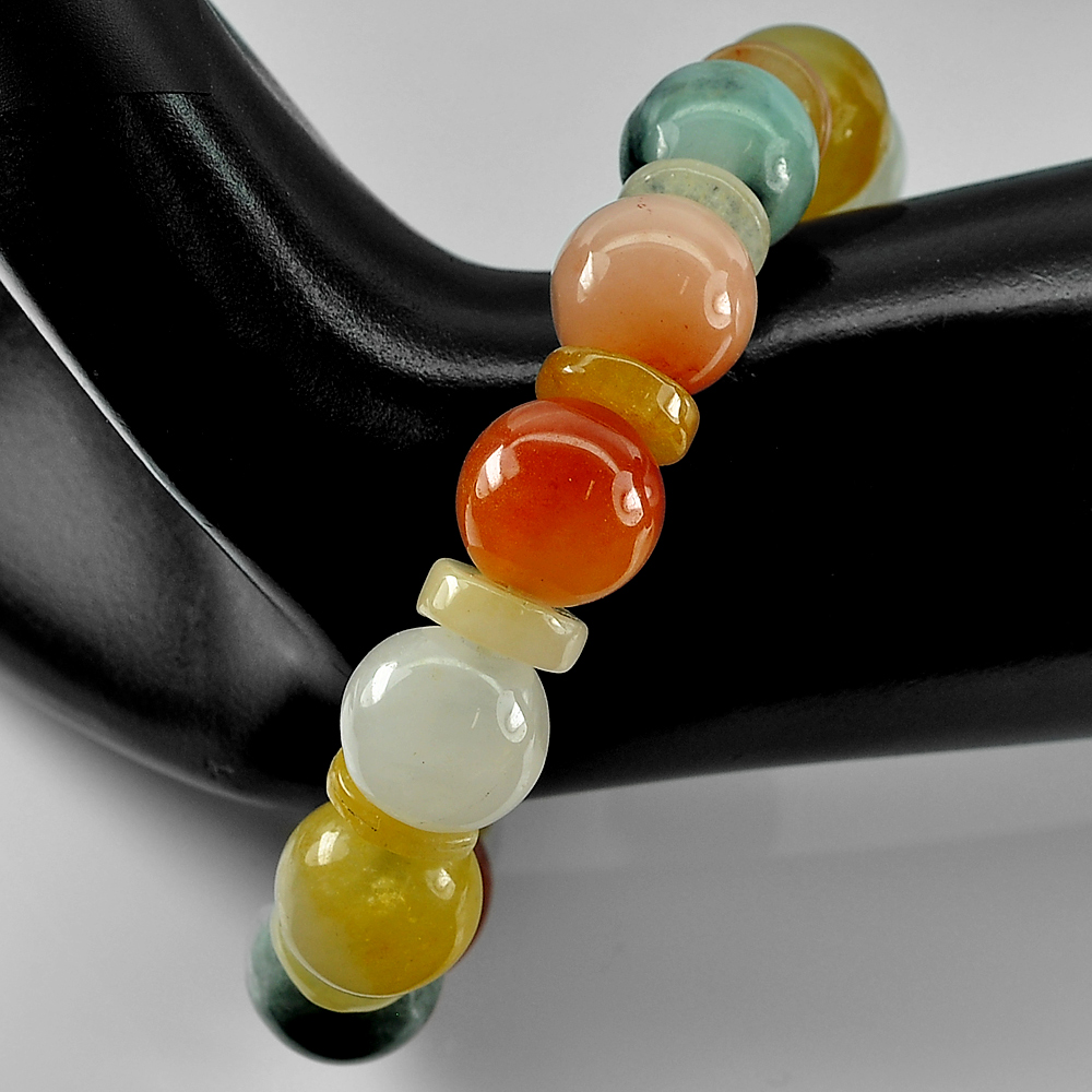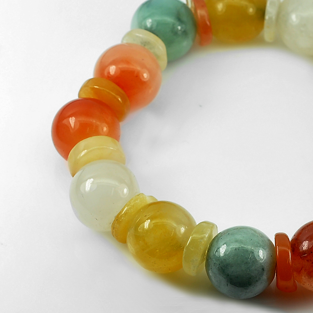 280.80 Ct. Natural Multi-Color Jade Beads Bracelet Length 8 Inch. Thailand