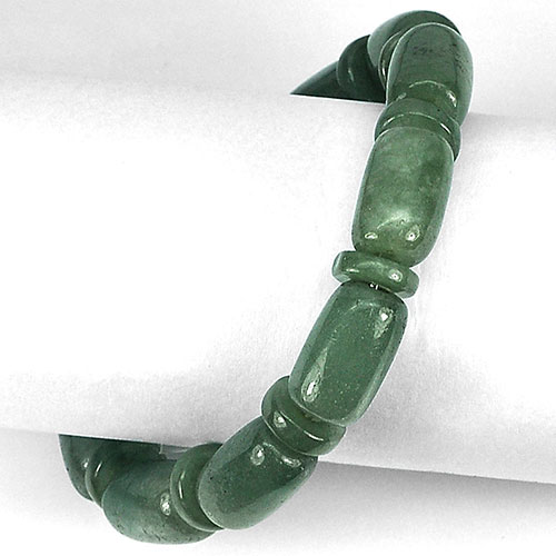 211.56 Ct. Natural Gemstone Green Jade Beads Flexibility Bracelet Length 8 Inch.
