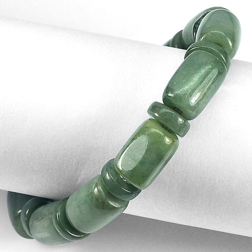 Green Jade Beads Flexibility Bracelet Length 8 Inch. 201.16 Ct Natural Gemstones