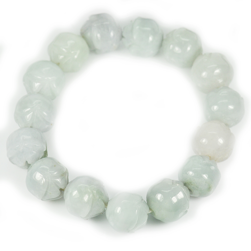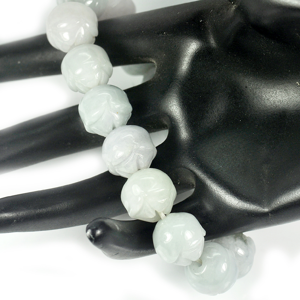 Green Jade 298.06 Ct. Beads Flexibility Bracelet Carving 8 Inch. Natural Gem