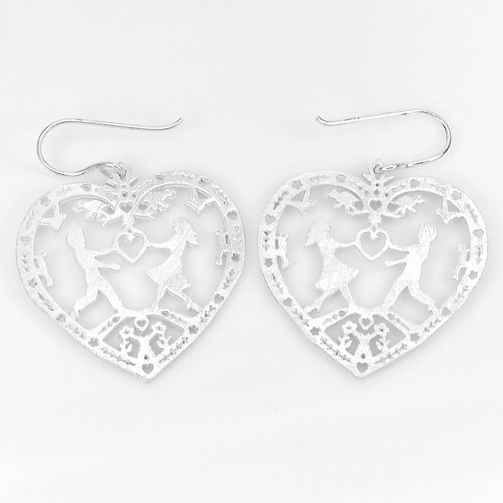 6.78 G. 925 Sterling Silver Dangle Earrings Jewelry Female Male inside Heart