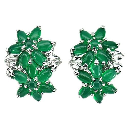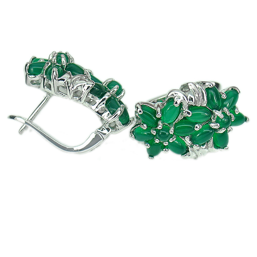 Natural Green Aventurine Real 925 Sterling Silver White Gold Plated Earrrings