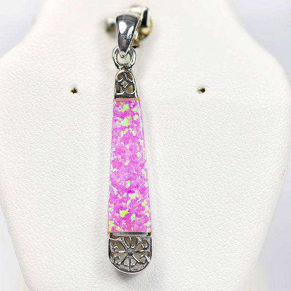 2.97 Grams Real 925 Sterling Silver Multi Color Pink Created Opal Pendant