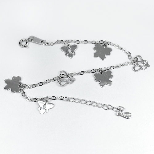 3.20 G. Real 925 Sterling Silver Jewelry Bracelet Butterfly Length 7 Inch.
