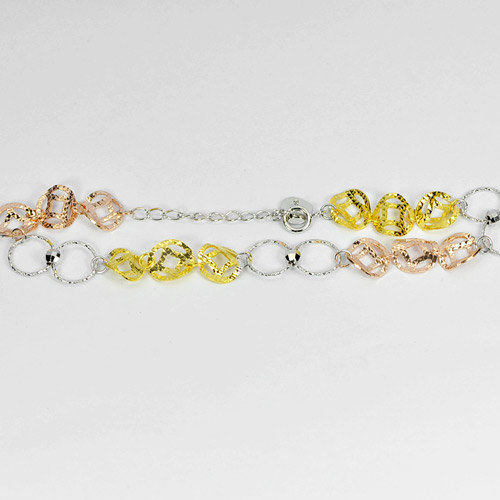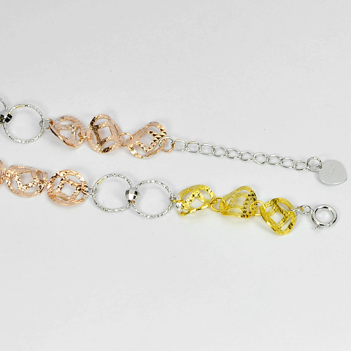 Real 925 Silver Sterling Three Color Bracelet 6 Inch. 2.79 G. Thailand