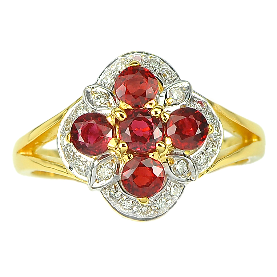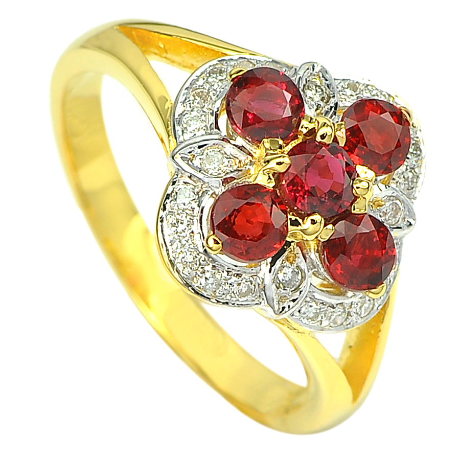 1.33 Ct. Natural Songea Red Sapphire & Diamond 18K Solid Gold Ring Size 8