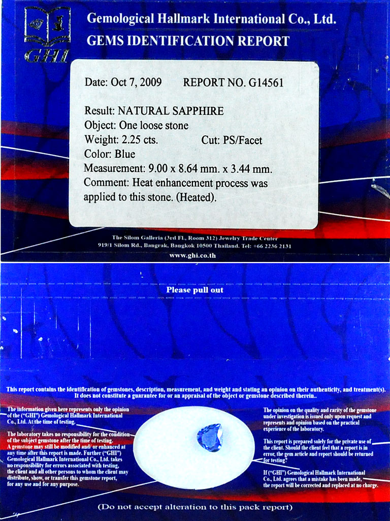 Certified 2.25 ct. Natural Rich Blue Ceylon SAPPHIRE