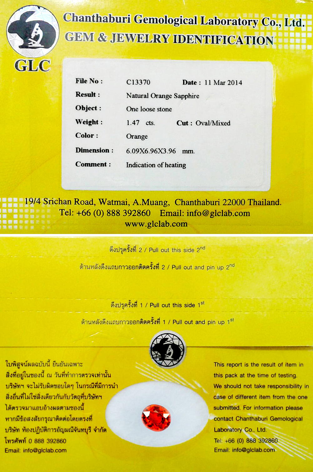 Orange Sapphire 1.47 Ct. Certified Clean Oval 6.09 x 6.96 Mm. Natural Gemstone