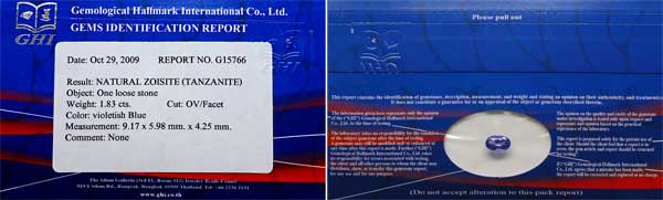 Certified Violetish Blue Tanzanite 1.83 Ct Clean Oval 9.17 x 5.98 Mm Natural Gem