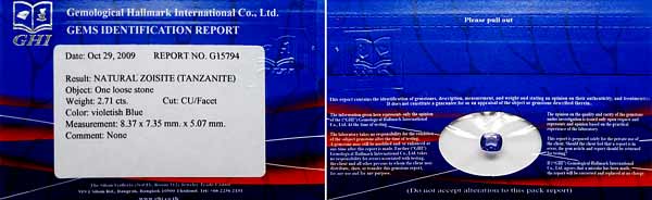Certified Violetish Blue Tanzanite 2.71 Ct. Clean Cushion 8.37 x 7.35 Mm Natural