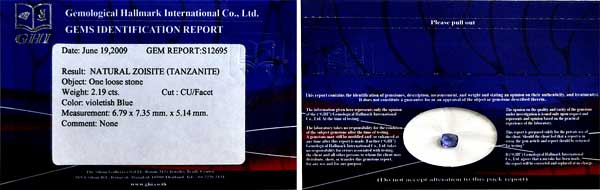 Certified Violetish Blue Tanzanite 2.19 Ct Clean Cushion 6.79 x 7.35 Mm. Natural