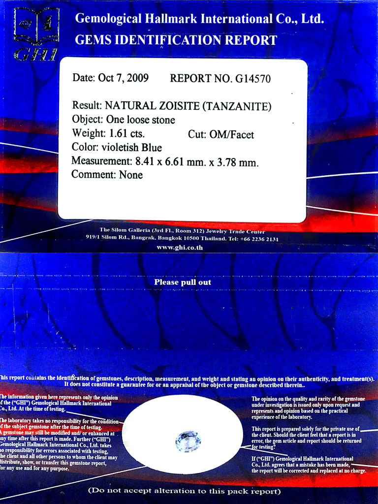 Certified Violetish Blue Tanzanite 1.61Ct. Clean Oval Shape Natural Gemstone