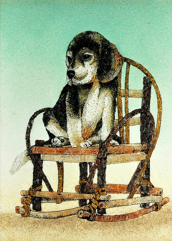 1650.00 Ct. Attractive Baguette Inlaid Gems Artwork Of Dog Seat