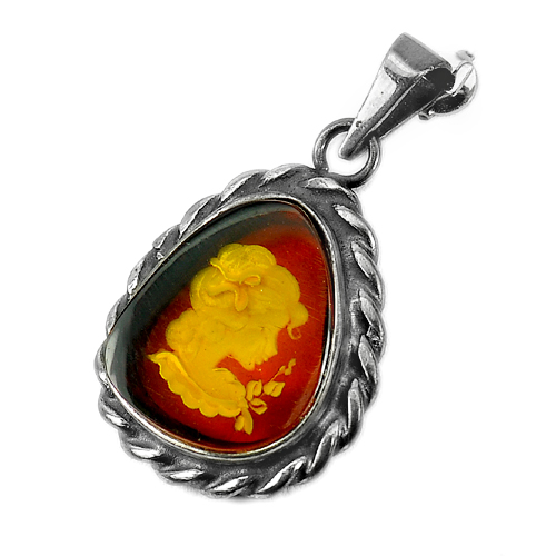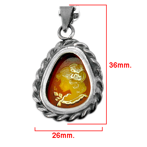 8.58 G. Cameo Victorian Golden Yellow AMBER 925 Silver Pendant Size 41 x 24 Mm.