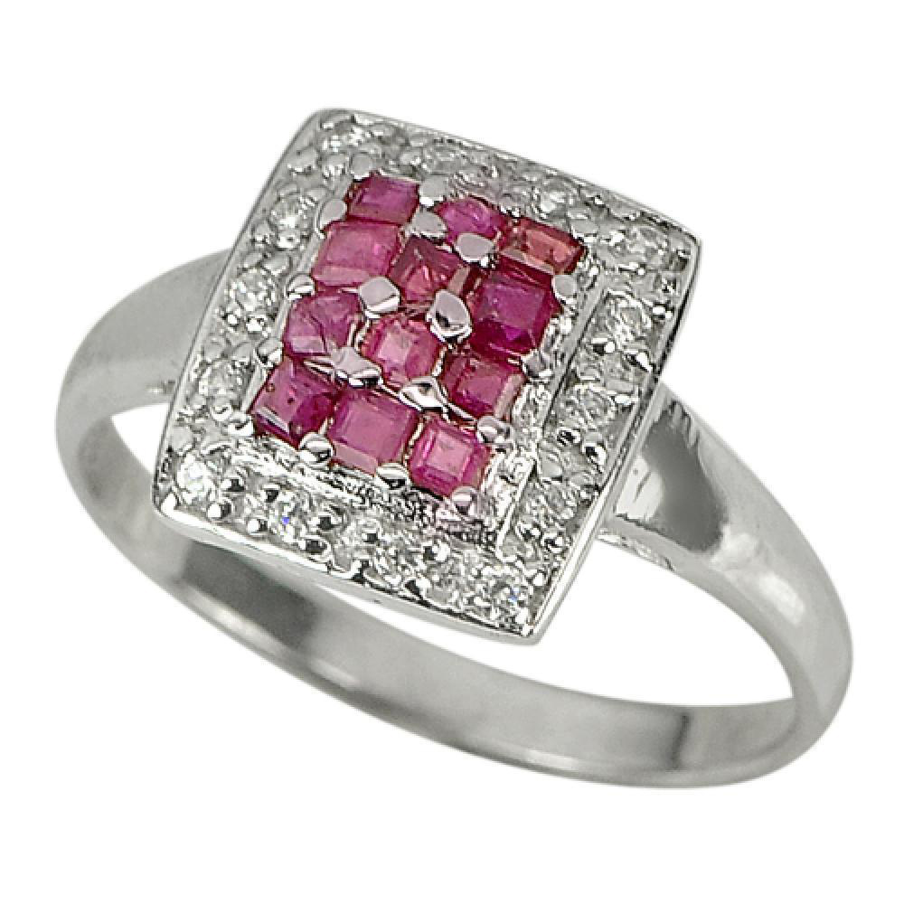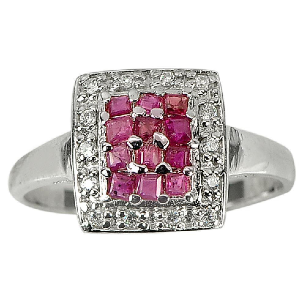 925 Sterling Silver Ring Jewelry with Natural Purplish Red Ruby and CZ Size 8.5
