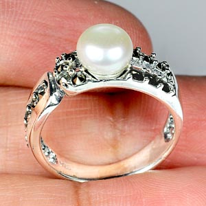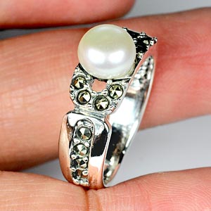 Round Cabochon White Pearl 1 Pcs. And Round Marcassite 14 Pcs.
