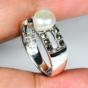 Captivate White Pearl 925 Silver Jewelry Ring Sz 8