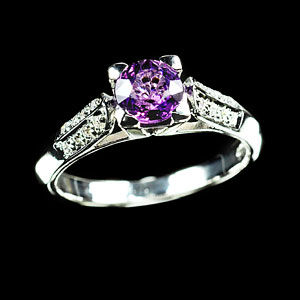 Center: Round Lab Created Violet Sapphire Size 5.6 Mm. 1 Pcs.
