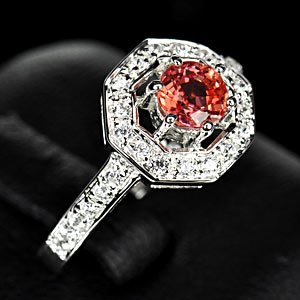 Center: Round Lab Created Padparadscha Sapphire Size 6 Mm. 1 Pcs.