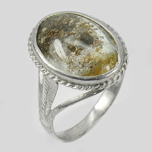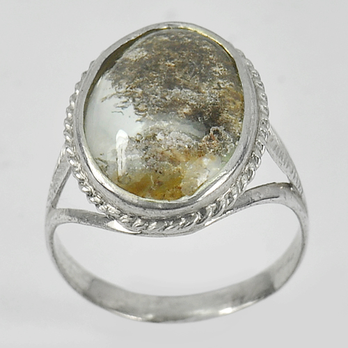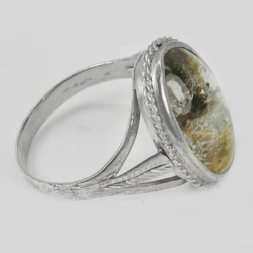 3.94 G. Natural Gem Moss Quartz Real 925 Sterling Silver Jewelry Ring Size 7.5