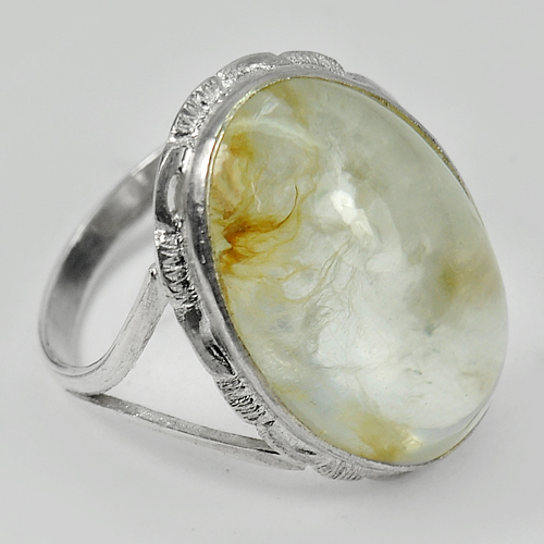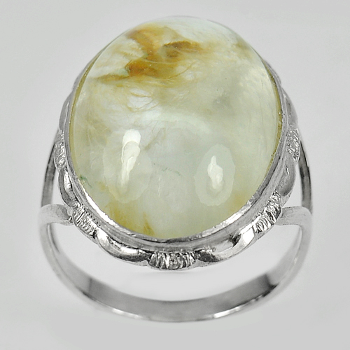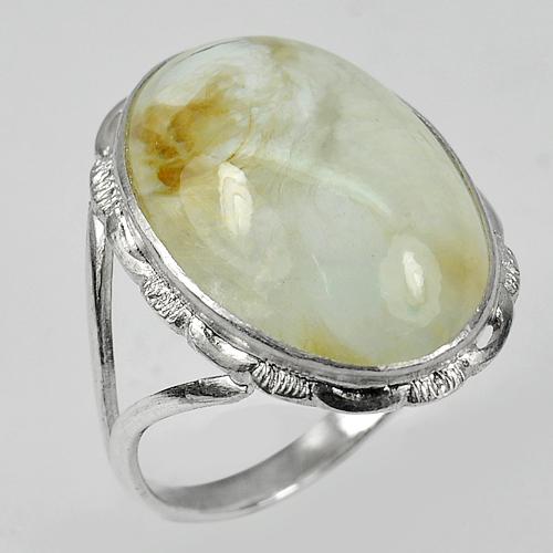 6.35 G. Natural Gemstone Moss Quartz Real 925 Silver Jewelry Ring Size 6.5