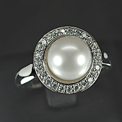 White Pearl Round 9 x 9 Mm. And White CZ Round Size 1 x 1 Mm.