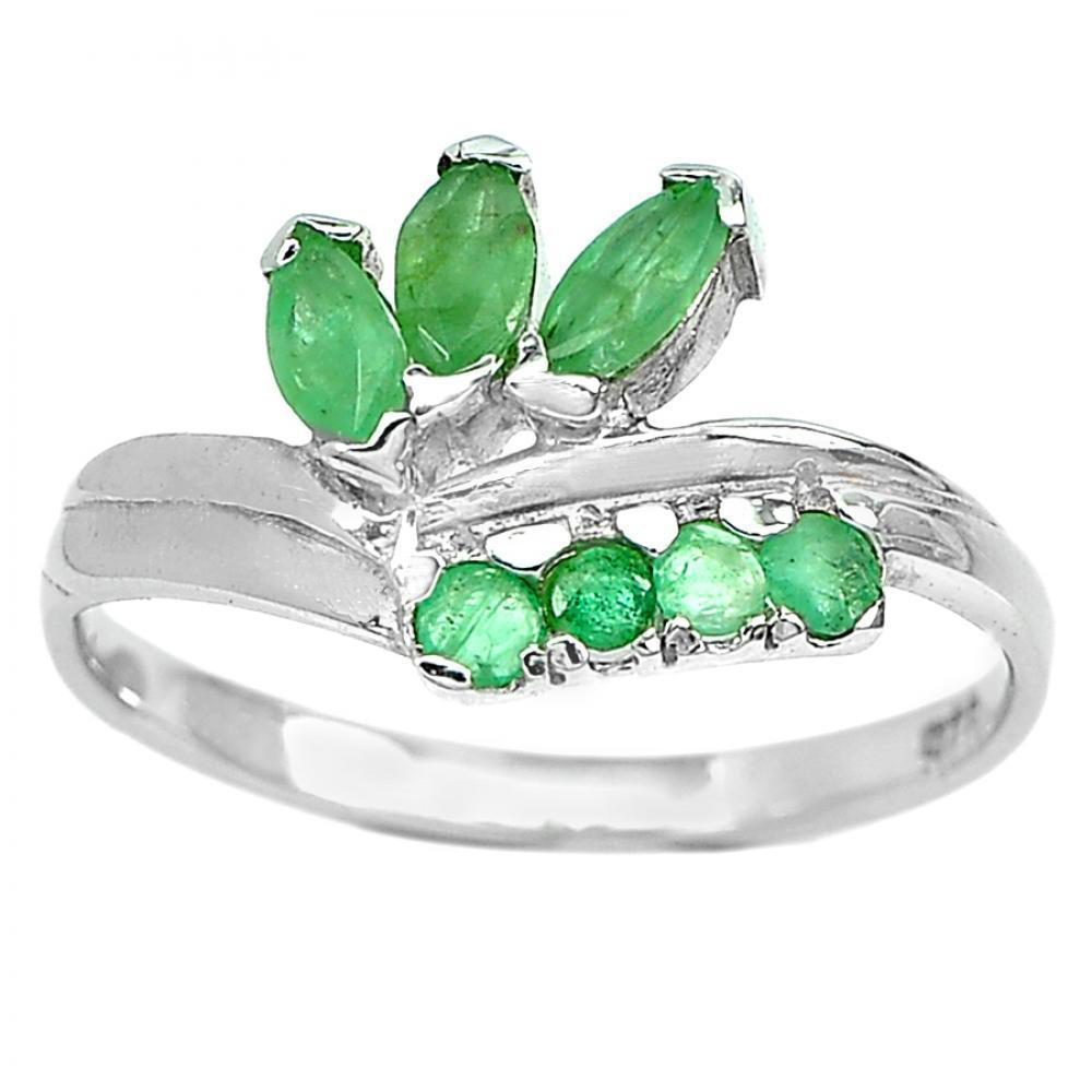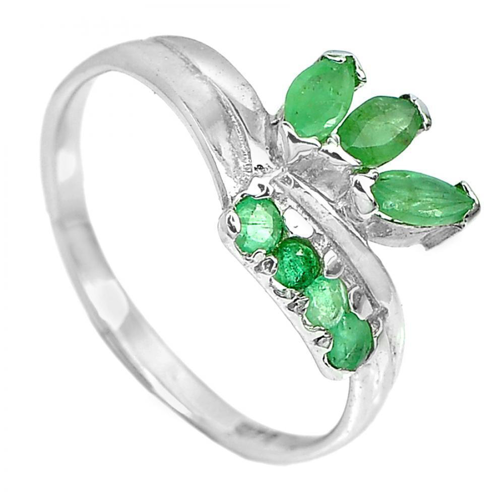1.83 G. Natural Gemstone Green Emerald Real 925 Sterling Silver Ring Size 7